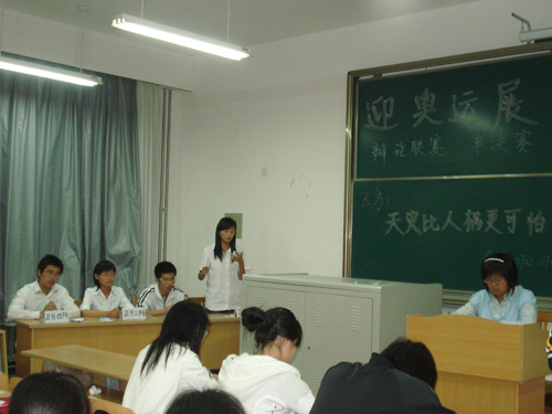 由太阳成集团tyc151cc基本功部和心翔演讲学会联合主办的“迎奥运 展会计风采”——太阳成集团tyc151cc辩论联赛半决赛于5月14日晚在明水校区3204、3206教室举行。