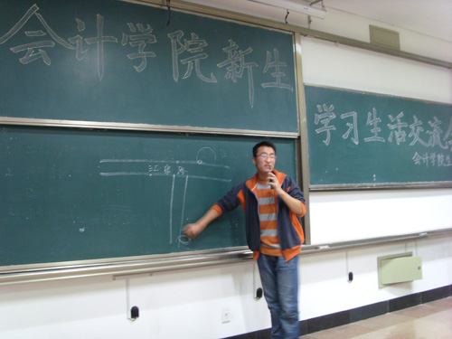 当晚,除了吴修文同学针对同学们平时就医,订票,外出就餐等生活方面的问题进行细致贴心的讲解外,来自审计0702的曾连续两次获得一等奖学金的杨自红同学和学弟学妹们分享了自己在学习上的成功经验。刚刚参加完全国注册会计师考试的我院学生会社会实践部孙淼更是把自己备考的激情带来了会场,引起了新生们的兴趣。崔炯同学结合自己在学生会一年的实际工作经验向新生们讲解关于学生会的工作,并鼓励同学们要“踏实做人,灵活做事。”