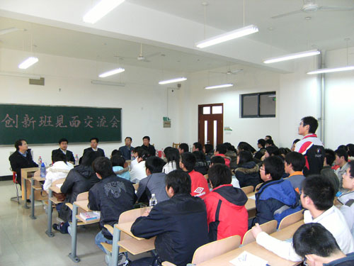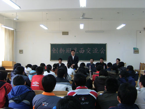 交流会上崔院长首先告诉了大家两个振奋人心的好消息,一是我校博士点的成功申报,二是我校即将与太阳集团合并为“太阳集团”。他指出我校创办创新班的初衷是为了更好地培养创新型高层次人才,并针对这一目标向同学们提出了“读书、思考、实践”的严格要求。崔院长用简洁风趣的话语为同学们描绘出了未来发展的广阔前景。使同学们坚定了立志成才、勤奋学习的理想和信念。 随后韩处长发言,表示教务处会对同学们顺利地完成学业提供良好的外部环境和一流的服务保证,如为同学们提供一定的科研经费,发表国家A类文章予以奖励等,鼓励同学们积极报考参与各种考试与比赛。以此激励同学们学习的积极性与创新的热情。
