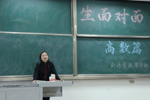讲座分为三个环节,第一环节——考前串讲,由李勇和丁伟华老师分别对微积分和线性代数的知识点作了简洁明了的精彩讲解;第二环节——课间十分钟,管理创新实验班的同学们带来了精彩幽默的情景剧《三顾茅庐》;第三环节——师生面对面,两位老师风趣而又意味深长的回答是同学们受益匪浅,平易近人的态度是整个教室洋溢着欢乐与轻松。在这一环节中,同学们从老师的解答中不仅仅解决了知识上的疑惑,也受到了精神上的教育。