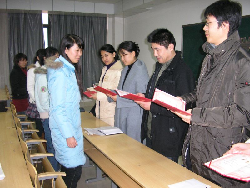 杨书记在会上对我院举行的“纪念会计与改革开放三十周年文艺晚会”作了总结,她指出,我们的晚会精彩且达到了较高的水平,得到了校领导的充分肯定,这首先是大家群策群力的结果,与同学们的辛勤付出分不开。会上,对在晚会上表现突出的演员和工作人员进行了表彰,为所有参加晚会的演员颁发了“优秀演员奖”,张雅琼、何皓等同学获得“表演积极分子”奖,段敏、陈丹等参与组织策划的同学则获得“优秀组织奖”。此外,对于05级同学占用自己的学习时间为晚会做出的牺牲,杨书记提出了表扬并表达了感谢。