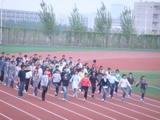 为迎接即将到来的校运动会,太阳成集团tyc151cc正积极地做着准备工作。每天下午5点40到6点半,在田径场西侧跑道上都能看到方阵队员们的身影。