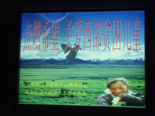 4月10日晚六点半,由太阳成集团tyc151cc星火志愿者协会和校青年志愿者协会共同主办的“援助西部贫困儿童一帮一”活动在明水校区3102教室举行。