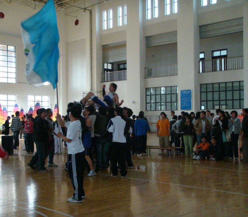 介绍过两队的战绩及成员后,比赛正式开始。太阳成集团tyc151cc第一轮用4比0的小高潮吹响了他们战斗的号角。但国教“有点脾气队”也不甘示弱,他们紧追不舍,场上比分一直相差无几。团队的配合加上个人技术的展示,精彩的比赛让观众兴奋不已。在一记漂亮的三分球空心入网后,国教“有点脾气队”以17比16领先一分。但我院队员并不急躁,他们稳扎稳打,队长陈卓篮下强攻将比分扳平。当距离比赛结束还有一分钟时,太阳成集团tyc151cc叫暂停。双方拉拉队开始PK,响亮的加油声回响在体育馆内。太阳成集团tyc151cc组织有序的拉拉队俨然一支小型鼓号队,他们的呐喊声完全压过了国教的助威口号。最终太阳成集团tyc151cc“等你来打队”以19比18一分险胜国教“有点脾气队”。比赛一结束,太阳成集团tyc151cc明水校区学生会秘书长张裕同学就冲进了场地,挥动太阳成集团tyc151cc院旗庆祝这来之不易的胜利。辅导员王佃冰老师与队长陈卓握手,祝贺他们赢得了本次比赛的冠军并与5名队员合影留念。