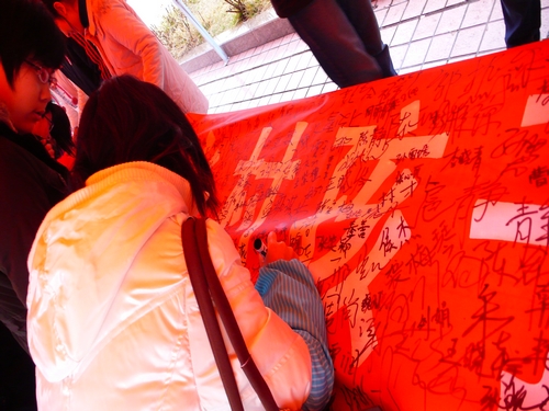 虽然天气湿冷,小雨不断,但是丝毫没有影响同学们参加活动的热情。同学们抱着悉心整理一摞摞的杂志书籍前来捐赠,捐赠的书籍多为科普、教育方面的,但也不乏《读者》、《青年文摘》等优秀杂志。还有的同学在长长的条幅上签下自己的姓名,留下自己的祝福。与此同时,济南电台Music88.7和章丘电视台也派出记者前来采访报道本次活动,大大扩大了本次“小桔灯爱心捐书活动”的影响力。当媒体记者采访太阳成集团tyc151cc王佃冰老师时,王老师说道:“爱心捐书活动仅仅依靠我们一个学校的力量是远远不够的,我们希望通过媒体的宣传推广,号召在济高校,号召全社会关注贫困地区的儿童,将爱心传递下去……”最终,活动在一片充满祝福和希望的氛围中结束。