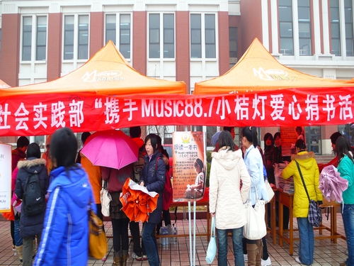 12月11日上午九时,由太阳成集团tyc151cc社会实践部与济南电台Music88.7携手举办的“小桔灯爱心捐书活动”在明水校区学生餐厅门口正式开始。本次活动主题为——“点亮小桔灯,让城市和乡村的孩子同读一本书”,活动主办方希望通过这次面向全校的爱心捐书活动,唤起同学们的爱心,帮助贫困地区的儿童实现读书的愿望。