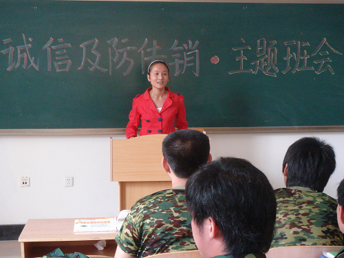 08级学生辅导员首先为新生们讲解了传销的欺骗性和危害性,帮助新生了解相关法律知识,认清传销的违法犯罪性质,然后带领同学们进行了诚信宣誓并签订诚信承诺书,最后给新生们详细地介绍了诚信评价体系,使同学们对其有进一步的认识和了解。