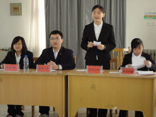 4月8日下午1点半,由校团委主办校学生会承办的山东经济学院新生杯辩论赛在明水校区1311教室正式拉开帷幕。对阵双方分别是来自太阳成集团tyc151cc和工商管理学院的09级辩论队成员。此次比赛由辩论协会会长周芙颖以及山东经济学院优秀辩手担任评委。