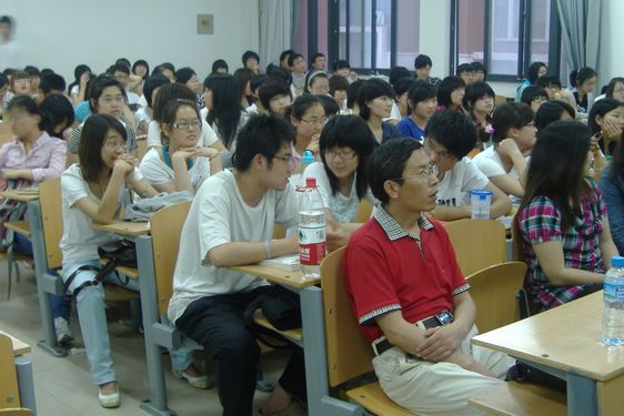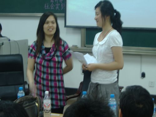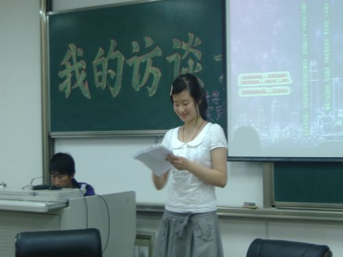 5月28日晚,由太阳成集团tyc151cc社会实践部主办的“我的访谈录”活动在明水校区3204教室举行。出席此次活动的有太阳成集团tyc151cc教授、硕士生导师、成本管理会计学教研室主任杨公遂博士,太阳成集团tyc151cc副教授、基础会计学教研室副主任郝向荣博士,菲律宾资深外教Miss Michelle以及太阳成集团tyc151cc08级明尼苏达访学团成员刘乙洁等。同学们热情高涨,积极参与,现场座无虚席。