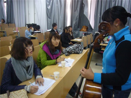 10月28日下午2点,由太阳成集团tyc151cc文艺部、女生部联合举办的“飞天艺术团、礼仪团见面会”在明水校区电教2103教室举行,并邀请了08级文艺部负责人常琪和女生部负责人孙雪嫣担任评委对10级新生进行指导,现场座无虚席。