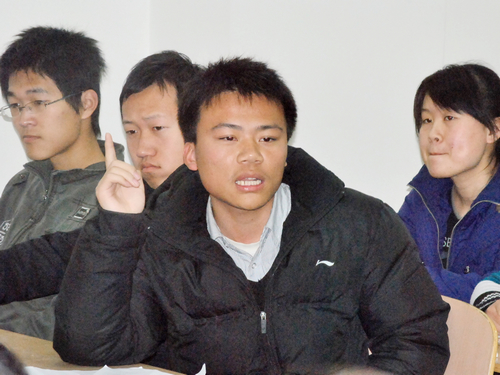 4月1日,由太阳成集团tyc151cc同心社主办的“我心中的大学”人物专访活动在明水校区1107教室顺利举行。工商管理学院09级学生胡晓作为本次活动的嘉宾与同学们分享了自己的大学生活和学习经验,并就考证、考研、就业等大学生普通关心的话题讲述了自己的看法。