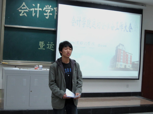 会议伊始,秘书处明水校区负责人陈龙飞同学提出了本次会议的主题:全力以赴备战运动会。此次大会的目的是全面落实运动会的相关事宜,将责任细分到人,以保证运动会顺利召开。为了使大家明确各自分工情况,会议主办者制作了幻灯片。分工情况如下:卫生部为检录组,社团部为钉鞋组,社会实践部为志愿组,学习部为记录组,宣传部为宣传组,生活部为医疗卫生食品组,体育部为运动员号码布组,纪检部为纪检组,基本功部为方阵组,女生部和文艺部为啦啦操组,秘书处为查表组,质点通讯社为摄影组。会议要求各部门在运动会期间的具体工作要落实到人,同时大会也充分考虑到了运动会各个环节的相关事宜。在啦啦操方面,文艺部为突发事件做好了应急准备;对于比赛专用物资,生活部将物资准备到位并力争凸显会计院的独特之处;女生部负责的助威团以及社会实践部对领导席的布置都在大会中作了相应安排。大会要求大家积极耐心地为运动员解决一切问题,保证运动员们能够以最佳状态投入到比赛中。同时,会议还统计了运动会期间的乘车情况,并根据需要分配了各部前往本部的人数。最后,大会也将此次运动会的看台布置采用三维图示展现给了在场的每一位同学,做到了直观、立体,将会使此后的搭建工作更加顺利。大会即将结束时,在场的每一个人都为自己加油,为会计加油,加油声一声高过一声。每个人都已下定决心,在这次运动会中取得优异的成绩。