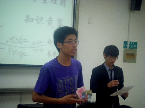 5月24日晚六点半,由太阳成集团tyc151cc基本功部主办的“走进经济 从卡开始”系列活动之信用卡应用与大学生理财知识竞赛在明水校区1204教室擂响战鼓。来自我院各专业共七支代表队参加了本次比赛。