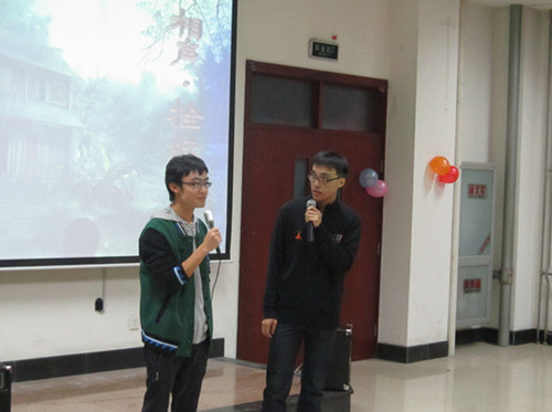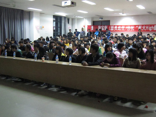 阿祖拉乐队的一曲《海阔天空》作为开场节目,拉开了本次晚会的序幕。随后由星火2011级新成员带来《你快回来》《记得》《奋不顾身》等经典歌曲大串烧,熟悉的旋律、深情的演唱使现场气氛迅速升温。随后我院精品节目——相声《拴娃娃》,则通过幽默的语言,诙谐的表演赢得了观众阵阵掌声;诗朗诵《我们都是志愿者》激情洋溢,铿锵有力,一句“平凡中的梦想华丽绽放”更是唤起了听众志愿服务的热情。此外,“音悦汇”带来的二胡演奏《青花瓷》优美动听,引人入胜;灵动的双手变换,巧妙的动作衔接——傣族舞表演《竹林深处》犹如妙龄少女从竹林中缓步走来,为晚会带来一份清新愉悦。为了增强晚会互动性,调到全场气氛,主办方将“成语大联欢”、“击鼓传花”、“昨日重现”等游戏穿插于文艺表演中,得到了大家积极响应,现场高潮迭起,可谓是气氛HIGH翻天。晚九点,本次联谊会在《相亲相爱一家人》的歌声中圆满结束。