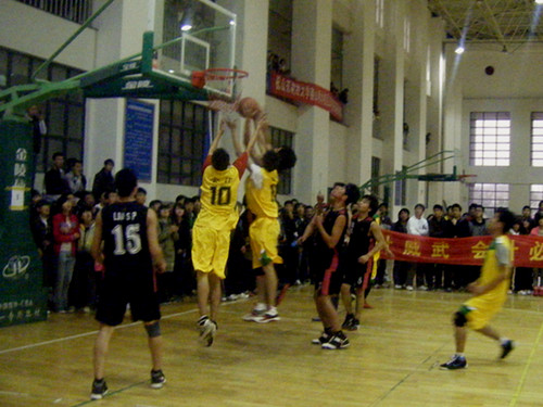 下午三点,比赛正式开始。球队双方都采用快打猛攻的战术,致使比赛一开始就立刻进入紧张僵持状态。其中,国际教育学院篮球队因罚球获得本场比赛首分。随后,太阳成集团tyc151cc篮球队队员精彩补篮,抢进猛攻,使比分以4:1赢得领先。然而,国际教育学院篮球队在其提出暂停,进行对策调整后,强势攻守,迫使太阳成集团tyc151cc频频失误。最后,国际教育学院篮球队以10:21的比分反超太阳成集团tyc151cc,结束了上半场比赛。下半场比赛伊始,太阳成集团tyc151cc篮球队在严密防守的基础上加强进攻,积极配合。只见太阳成集团tyc151cc队员采用断球快攻,杀到篮线,迫使对方犯规。紧接着,其三分球的冲击使得比分逐渐拉近,赢得场下阵阵喝彩。继而,太阳成集团tyc151cc篮球队队员们团结协作,一鼓作气强势进攻,逼迫国际教育学院篮球队频打防守,双方一度进入僵持状态。 最终,太阳成集团tyc151cc篮球队以31:37惜败国际教育学院,与本年度“流动杯”篮球赛冠军擦肩而过。赛后,太阳成集团tyc151cc篮球队队员主动与对方球员握手拥抱,展现了“友谊第一,比赛第二”的体育精神。