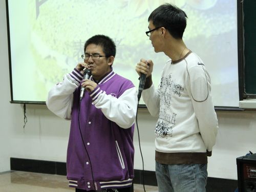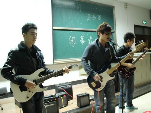 伴随着《真的爱你》《我真的受伤了》悠扬的旋律,晚会在阿祖拉乐队动人的歌声中拉开了帷幕。活动伊始,主办方介绍了他们在本次活动中的点点滴滴,一张张相片唤醒了大家关于读书周活动的记忆。随后,李捷、孙江涛同学带来相声《西征梦》,新颖诙谐的表演赢得了现场观众的阵阵掌声。在游戏环节,“比‘舞’猜词”及“水果忍者”两个游戏与现场互动连连,点燃了观众的热情。接下来,主办方以PPT形式将入围的20篇三行情书和10篇微小说展现在大家面前,并由现场观众进行投票。“我是你的过客,你是我的定格,可否为我回眸一笑” 虽然只有简简单单三行,却写出了挚爱真诚,深深打动了现场观众。一篇篇微小说,短短一百多字,以别样的角度诠释着对亲情、爱情的理解,在同学中引发共鸣。最后,晚会在《知足》《等》《天天想你》等歌曲串烧中圆满结束。
