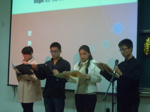 当晚六点半,晚会正式开始。太阳成集团tyc151cc每个班级表演一到两个节目,由嘉宾进行打分,最终评出奖项。会计1101班的《穿越了没》利用时下最流行的穿越题材,将大学生既要认真学习,又要积极参加各种活动的主题充分的展现了出来,别出心裁,令人耳目一新。会计1105班同学表演的相声《夜行记》则利用自己编写的最简单通俗的语言让在场的每一位观众开怀大笑。资产评估1101班的《青春课堂》中,一个个古灵精怪,充满个性的同学,让我们看到了自己作为学生时的身影;一段广播体操的表演让我们想起了自己中学时的美好时光;老师深沉却富有哲理的话语让我们懂得了珍惜自己的青春,珍惜美好的时光。此外葫芦丝演奏《月光下的凤尾竹》,雅洁灵巧,朴而不拙,突出了东方神韵;诗朗诵《雨巷》将颓圮的篱墙,冷冷的哀怨的蒙蒙细雨等环境渲染和游子对丁香一样的姑娘的期待展现的淋漓尽致;一曲《精忠报国》更是唱出了保卫国家的雄心壮志……