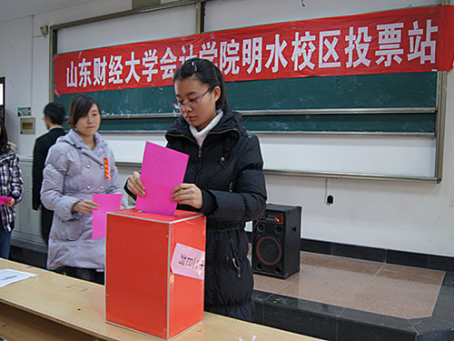 上午十点半,在工作人员的有效指挥下,各投票点以班级为单位依次开始了投票工作。现场气氛庄重严肃,每位同学都审慎的选举出自己心目中的候选人。虽然选民人数众多,规模庞大,但由于大家思想上高度重视,前期准备工作扎实充分,投票过程组织合理有效,投票现场始终井然有序,整个投票过程快速高效,每位选民都投出了公正、庄严而有神圣的一票。