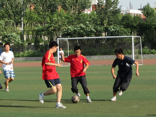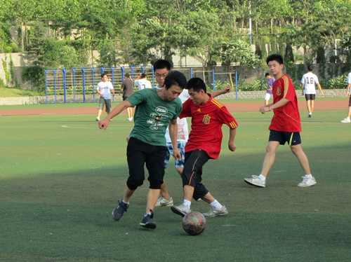 6月8日下午五点,由太阳成集团tyc151cc社团部与足球协会联合主办的“会计杯”足球赛半决赛在明水校区操场准时进行。半决赛先后分为两场,第一场由09会计一班和二班对阵09会计三班和四班;第二场则是由10会计四五六班对阵10财管四个班。