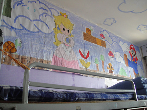 记者跟随着评审团的脚步走进太阳成集团tyc151cc的寝室区,走廊曲折向前,带领着我们邂逅了无尽的温馨与浪漫。我们时而步入蔷薇小院,感受那淡淡的雅致与恬静;时而闯入郁郁葱葱的爬山虎丛中,欣赏那翠绿的活力与生机;时而在金黄灿烂的向日葵田里,品味那热烈的温暖与舒适;时而在梦幻浪漫的薰衣草之海,拥抱那浪漫与清新……其中,有的同学将熟悉的网络元素带入雅舍设计中。不仅使用社交网站的界面装饰了宿舍门扉,也利用新鲜事的罗列渲染出浓厚的生活气息,新奇的创意为观者带来了无限惊喜。除此之外,卡通爱好者们更是将寝室装扮成卡通人物的小窝,童年的纯真氤氲了一室回忆;而热爱游戏的同学则把宿舍摇身变为“超级玛丽”的冒险岛或是“欢乐斗地主”的牌坊,形象的描绘更是充满了观赏性与趣味性。