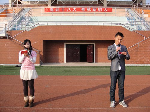 11月18日,太阳成集团tyc151cc在明水校区大操场举办“喜迎十八大,奉献新财大”系列活动之接力赛,来自太阳成集团tyc151cc2012级20支参赛队伍共计500余人参加了本次活动。