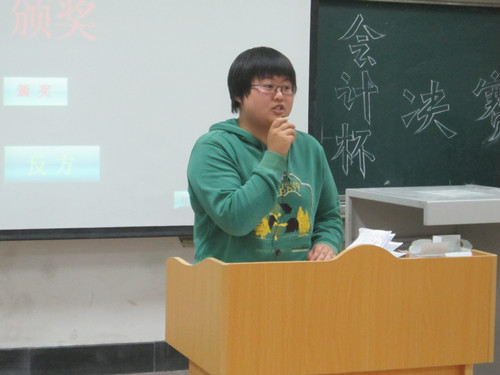 从10月11日起,经过初赛和复赛激烈的淘汰赛比拼,财务管理1201班、资产评估1203班等六个班级代表队赢得了决赛的入场券。决赛之夜,正反双方就“历史题材影视剧可不可以‘戏说’”展开激烈辩论。其中最具看点的是决赛第二场比赛:首先,继正反双方各具特色的自我介绍后比赛进入开篇立论环节,正方一辩以“戏说只是合理想象,仍以历史为主干,增加合理的艺术加工”为切入点,陈述了历史剧戏说的现实价值及其所具有的创新精神,用简洁易懂的语言阐明己方“历史题材影视剧可以‘戏说’”的观点。反方则从历史的真实和严肃性及历史对后人的教育责任等方面进行层层剖析,论证己方“历史题材影视剧不可以‘戏说’”的观点。接着,在攻辩环节中,反方针对一系列热播宫剧把“武则天”、“唐太宗”等历史人物戏剧化歪曲篡改进行批驳,正方则另辟蹊径,指出“戏说”反而为历史增添了趣味性,有利于历史知识的普及,双方精彩的发言使场下的观众爆出热烈的掌声。随后,进入自由辩论的环节,反方辩手们精辟的措辞,犀利的言辞展现出咄咄逼人的气势。正方辩手毫不示弱地沉稳应对,从容深刻,现场气氛迅速升温,达到白热化状态。最后,总结陈词环节中正反双方四辩清晰的思路和巧妙的陈词给观众留下深刻印象。