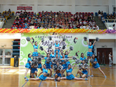 5月15日,太阳集团第二届校园文化艺术节啦啦操大赛在舜耕体育馆隆重举行,来自各学院的14支啦啦队参加了此次比赛。