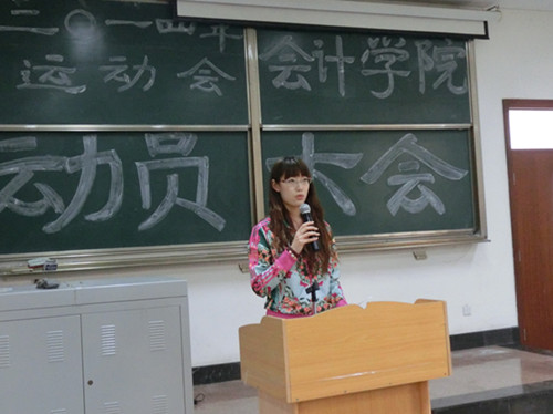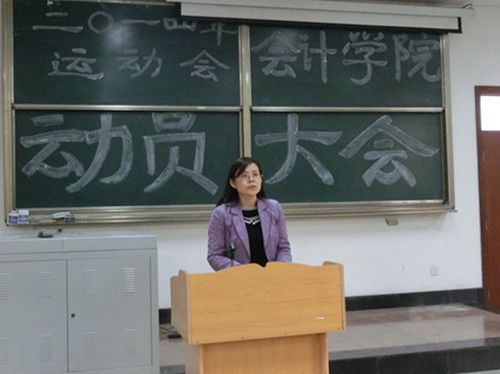 4月11日十二点半太阳成集团tyc151cc2014年春季运动会动员大会于明水4101教室如期举行。出席此次动员大会的有党总支副书记付亚,辅导员老师郑大伟、于苗、沙林斌以及太阳成集团tyc151cc学生会骨干成员和参加此次运动会的运动员、方队参与者和啦啦操全体成员。