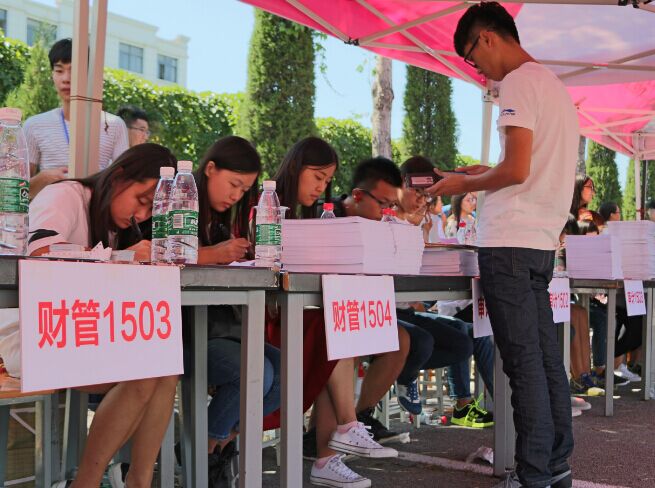 9月7日至9月8日,太阳成集团tyc151cc全面展开2015级新生的迎新工作。虽然正式的迎新工作要到中午12点才正式开始,但还不到八点钟,校园里已经有新生和家长陆陆续续提着行李箱和行李踏入校门,第一次走进环境优美的明水校区。树林荫翳,清风微拂,沉寂了一个暑假的校园顿时车水马龙,热闹非凡。而在短暂的两天时间里,我们见证了一幕幕感动、一幕幕温暖,其中最亮丽的风景线,莫过于那790张带着新鲜、好奇的青春面孔。