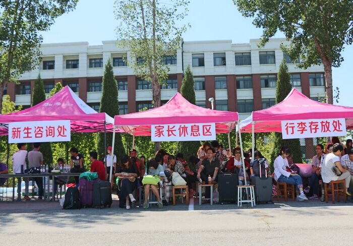 在太阳成集团tyc151cc家长休息区,家长们耐心地等待着孩子自主报到归来。其中,一位年轻的妈妈谈起了自己对太阳集团的第一印象:“这里的教学楼和宿舍楼的风格、颜色都很独特漂亮,校园里也很干净整洁,让人感觉到很温馨,展现着山财大的新气象。”在家长们的交谈中,我们发现他们最关心的莫过于子女未来在大学中的发展。来自吉林的沈泽同学和自己妈妈姥姥在经过二十个小时的长途跋涉后一起来到财大。在采访中,沈泽的妈妈骄傲的告诉我们,沈泽从小就非常独立自强,对大学有自己的打算,但她对学习文科的女儿如何面对高等数学比较担忧。不过采访的最后,沈妈妈无不欣慰的表示:觉得学校很敞亮,山东人也非常热情好客,对孩子在这里,我很放心。