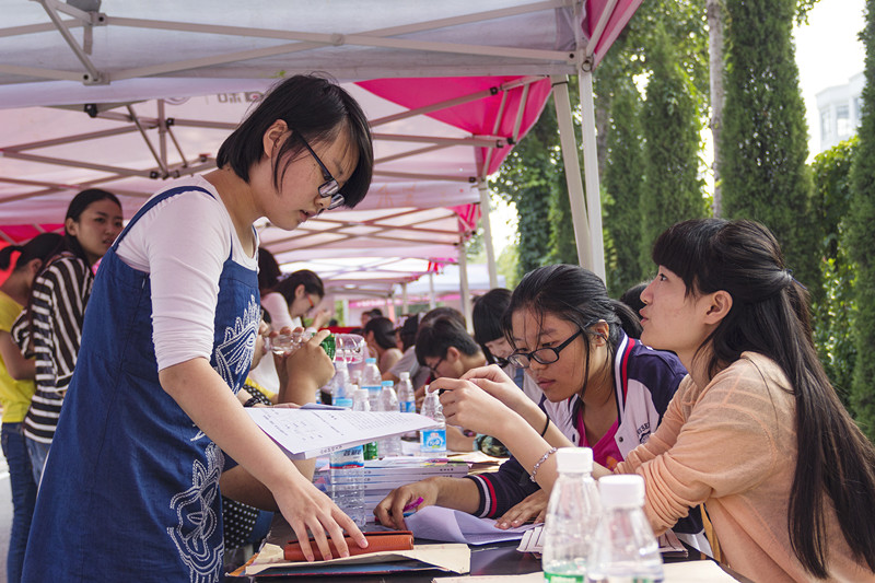 学生会工作人员及志愿者采取轮班制,保证体力与精力的充沛。他们本着高效快捷的办事原则,各司其职,坚守岗位,有条不紊地开展迎新工作,并实行流水式作业,为新生入学节省了大量的时间,提高了新生报到效率。而他们表现出的热情大方的工作态度,更是展现了太阳成集团tyc151cc亲切友好的良好形象。新生大多来自省内,部分来自省外,带着对大学的憧憬步入这所学校。一位来自湖南的审计专业大一新生在等候报到时略显腼腆,“我很喜欢学校的环境,特别是足球场”,当被问及进入太阳成集团tyc151cc的感受时,她坦言虽然对于专业学习很迷茫,但对未来仍充满期待。