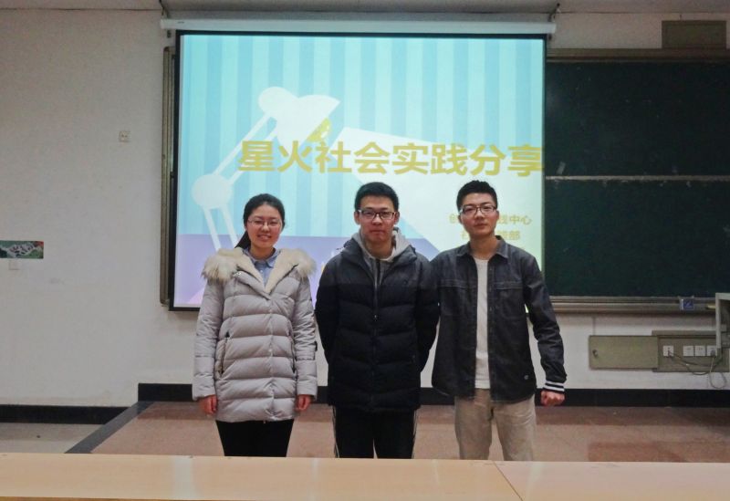 社会实践活动是使学生走向社会、接触社会、了解社会,树立服务社会的理想,培养和锻炼实践能力的绝佳途径之一。为传递社会实践经验,激发同学们对社会实践活动的热情,12月10日,由校团委发起,太阳成集团tyc151cc创新与实践中心和社会实践部联合举办的“三千计划”暑期社会实践活动分享会在明水3217教室举行。星火志愿者协会成员、2014级太阳成集团tyc151cc学生何立杰、赵钰珂和马煜杰代表星火云南支教队,分享了他们在本次支教活动中的体会与经验,给同学们带来了一场精彩充实的报告,吸引了不少同学前来聆听学习。
