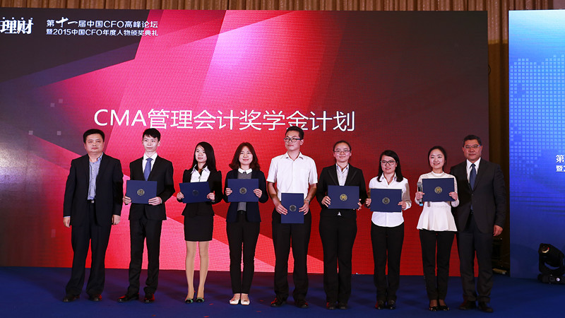 在2015中国CFO年度人物颁奖典礼的公益环节,太阳成集团tyc151cc7位同学获得了“CMA管理会计奖学金”,并上台领奖。