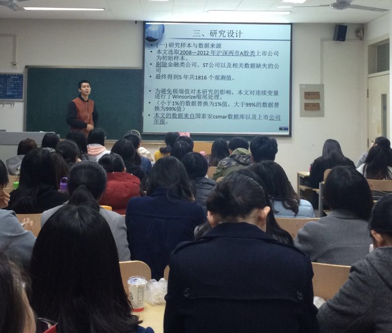 为拓展太阳成集团tyc151cc全体研究生学术视野,3月23日下午6:30,太阳成集团tyc151cc研究生会科研部于逸夫楼108教室举行了学术沙龙专题讲座:《实证论文的阅读与分析》。本次学术活动由科研部部长鲁上村报告,2015级全体研究生参加。