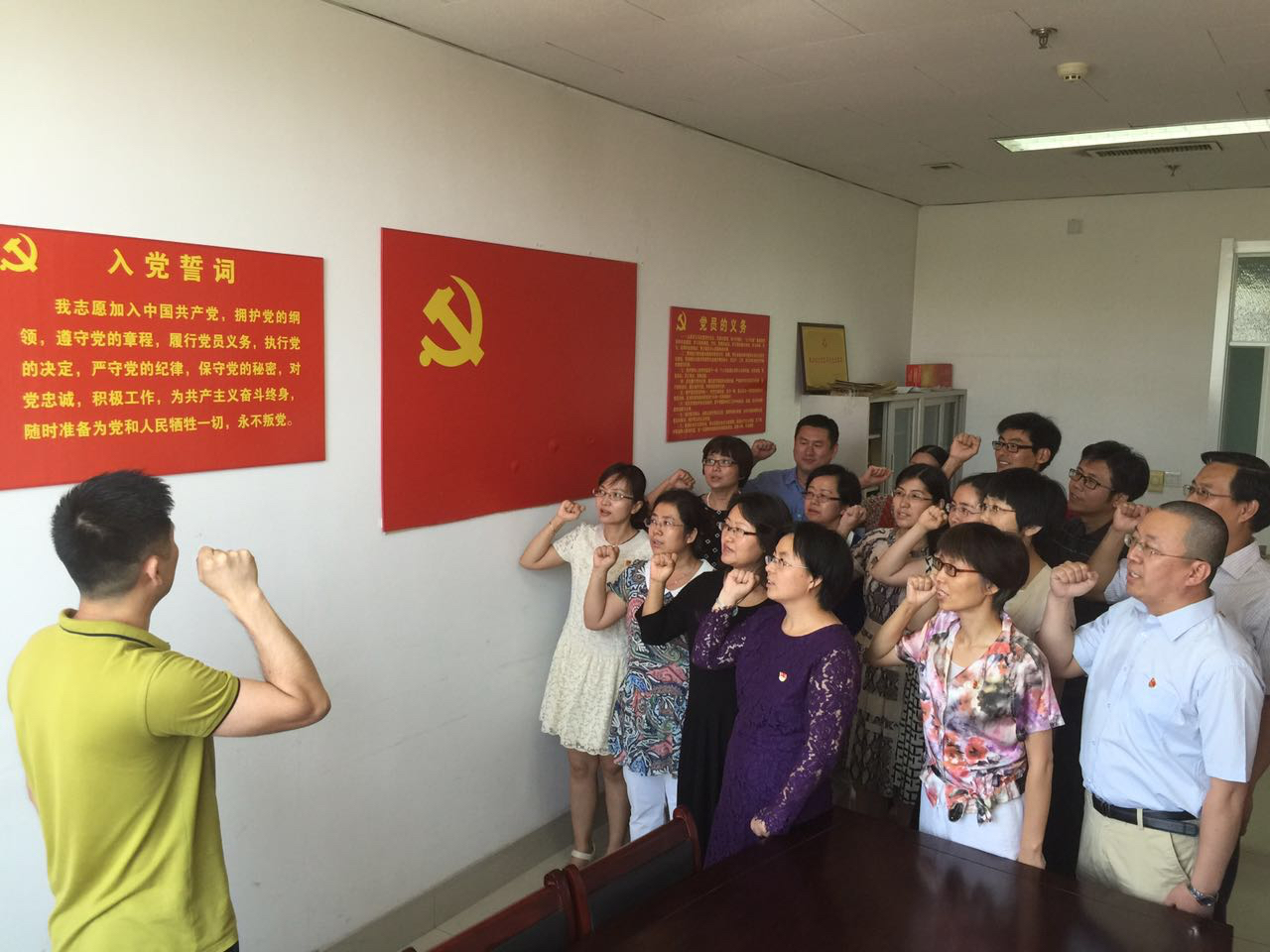 2016年6月29日,根据学校党委统一部署,为了纪念中国共产党成立95周年,太阳成集团tyc151cc党委组织全体教工党支部在学院党员活动室举行了重温入党誓词活动。教工党员们胸前佩戴着党徽,在党旗下庄严宣誓:“我志愿加入中国共产党,拥护党的纲领,遵守党的章程……”。