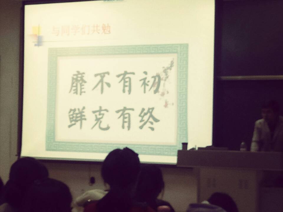 “忙,是一种状态,是一种无奈,是一种过程,是一种人生。忙,将成为生活的主题和旋律。”石贵泉老师指出,新时期大学生面临很多的机遇和挑战,我们应该把握时机,适应其中,但同时这也要求我们牢记自己的责任和使命,努力实现梦想,切忌碌碌无为,无所事事,荒废学业。最后,石教授还向大家表达了自己的真挚祝愿,希望同学们在以后的追梦道路上,能坚定不移,不忘初心,并以“靡不有初,鲜克有终”来勉励大家。