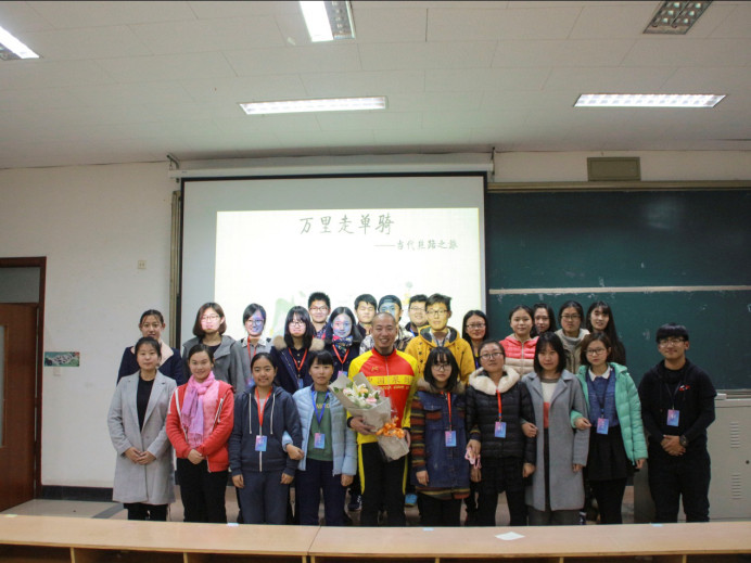 11月14日晚6:30,由太阳成集团tyc151cc团委主办,太阳成集团tyc151cc创新与实践中心承办的“刘海翔万里走单车骑行分享会山财站”在明水校区3217拉开帷幕。
