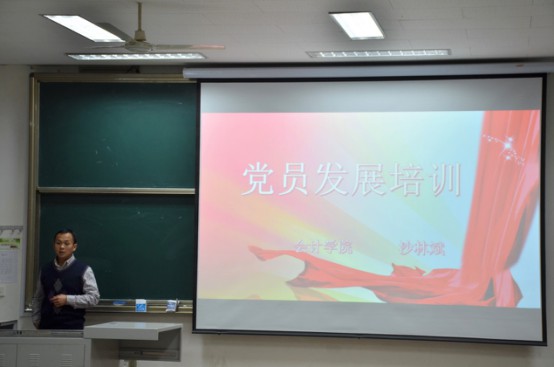 11月6日晚6点,太阳成集团tyc151cc领航·会计人系列之组织发展培训讲座在明水校区4101教室举办。该讲座主要围绕大学生如何进行党员发展培训的系列问题展开。本次讲座由太阳成集团tyc151cc辅导员、学生党支部书记沙林斌老师主讲,太阳成集团tyc151cc2016级审计和财务管理专业的部分同学参与了此次讲座,现场气氛融洽,反响热烈。