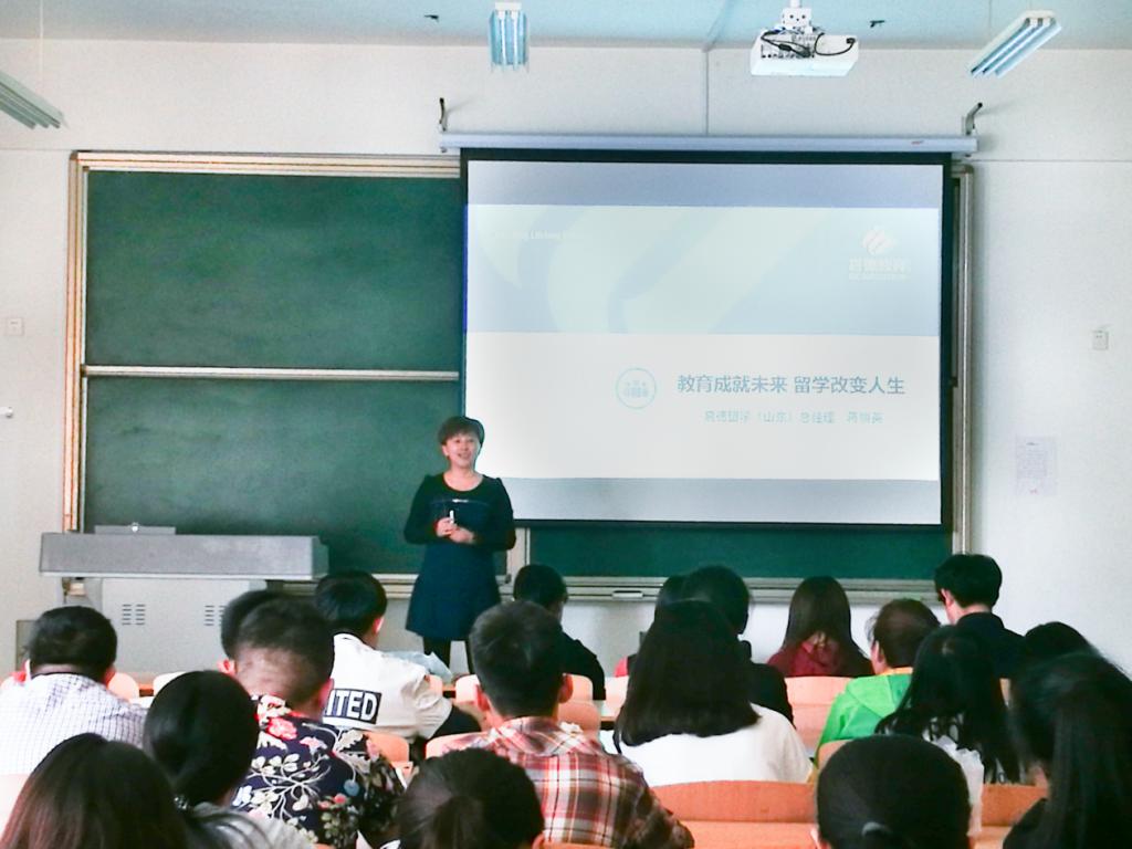 讲座开始,蒋老师以一段短视频提出了留学增长见识、提高能力等优点,从而引出了本次讲座的主题——教育成就未来,留学改变人生。首先,蒋老师详细介绍了美国、加拿大、澳大利亚、英国四大主流留学国家的基本信息,也简单介绍了其他一些热门国家或地区的留学特点和要求,使得同学们对留学国家的基本情况有了更加全面的了解。接下来,蒋老师通过询问同学们关于未来的计划,引出了如果出国留学,应该做什么准备的话题。蒋老师就专业确认、软实力、提升语言能力、绩点四个方面提出了一些建议。尤其是在提升语言能力方面,蒋老师明确说明了语言对于大学生们的重要性,不仅在留学方面占很大的比重,还在学习生活中必不可少,所以蒋老师借此表达了希望同学们能够认真学习语言类科目,提高自己表达能力的期望。