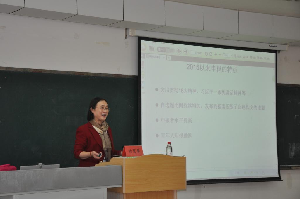 本次会议专门邀请山东大学管理学院院长杨蕙馨教授作关于国家“两金”项目申报经验与评审的主题讲座。杨蕙馨教授向在座的教师介绍了2015-2017年度国家社科基金项目的总体申报与评审情况,对国家社科基金项目的受理数、平均入围率、立项率以及各学科的申报情况进行了详细分析,总结了自2015年以来国家社科基金项目申报的几个重要特点,让在座教师对项目的申报与评审有更深层次的了解。最后,杨蕙馨教授结合自身的经验就国家“两金”项目的申报提出了几点建议,包括项目设计要注重创新,设计论证语言应清晰明了,项目申请书要注重逻辑性和完整性。