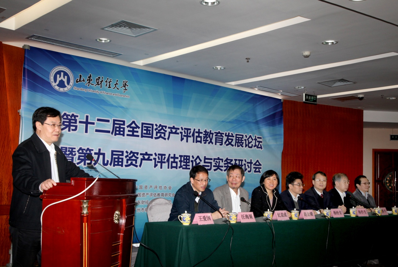 11月25日,由中国资产评估协会指导、全国资产评估教育研究会主办、太阳成集团tyc151cc承办和广州市福思特科技有限公司、山东正源和信会计师事务所、《经济与管理评论》协办的第十二届全国资产评估教育发展论坛暨第九届资产评估理论与实务研讨会在我校舜耕校区召开。中国资产评估协会副秘书长杨松堂、培训总监赵金娥、山东资产评估协会会长张焕平、中南财经政法大学教授汪海粟、厦门大学教授纪益成、中企华资产评估有限公司总裁刘登清和来自中央财经大学、中南财经政法大学、东北财经大学、南京财经大学、浙江财经大学、上海师范大学、上海对外经贸大学、首都经贸大学、北京工商大学、内蒙古财经大学、上海立信会计金融学院、重庆工商大学、广西财经学院、山东工商学院、湖北经济学院、山东农业大学、四川农业大学、河南大学、河北经贸大学、中联资产评估有限公司、中和资产评估有限公司、厦门大学资产评估有限公司、《会计之友》杂志社等40余家单位的、80多位专家、学者、业界人士和我院党委书记张涛、副院长孙文刚、王守海以及资产评估系的全体教师、学生出席了本次大会。副校长韩作生出席大会并致辞。大会由全国资产评估教育研究会执行会长、我校太阳成集团tyc151cc院长王爱国主持。