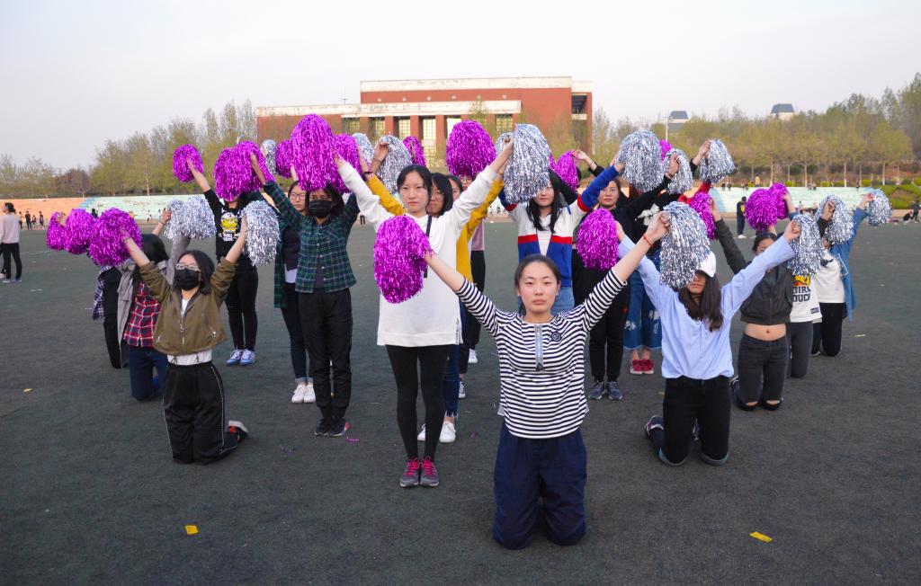 清晨六点,姑娘们在操场上准时集合,为了训练臂力,让动作更有力度更加深入人心,她们用水瓶代替了花球。一次次的抬臂让她们微微出汗,汗水映着朝阳闪耀着如宝石般美丽的光芒。旋转、踢腿、抬臂、回眸,姑娘们的一颦一簇成为了这个春天最动人的风景。下午五点半,同样的身影,同样的舞姿,但更多的是同样的坚持。没有人轻言放弃,没有人频频不耐,没有人放弃这个团体。影子不断拉长,当太阳完全消失在山的一边,灯光下的操场就是她们的舞台!整齐划一的动作,迅速到位的舞步,眼神交流时无声的默契……引得同学们驻足观看,百看不厌。俗话说的好:“台上一分钟,台下十年功。”一个多月的训练,只为能在耀眼的一瞬光芒万丈!不知疲惫的重复着同样的动作,不知经历了多少重组和调整,不知流下的是汗水还是泪水,她们用行动诠释了青春该有的样子,成为了她们最美丽的样子。