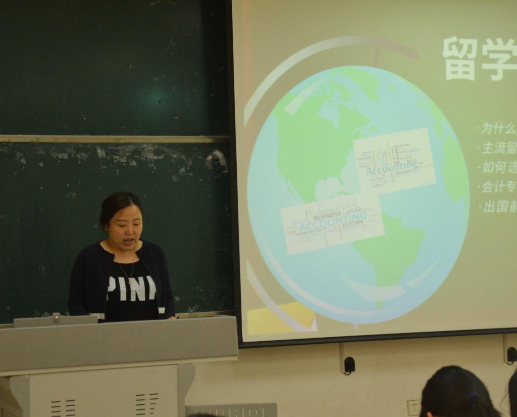 2018年3月29日星期四下午三点,由太阳成集团tyc151cc主办的领航会计人讲座在明水校区1201教室准时举行。太阳成集团tyc151cc的百余名学生准时到会,韩菲老师作为本次讲座的特邀嘉宾,为同学们提供了关于留学的真诚建议。
