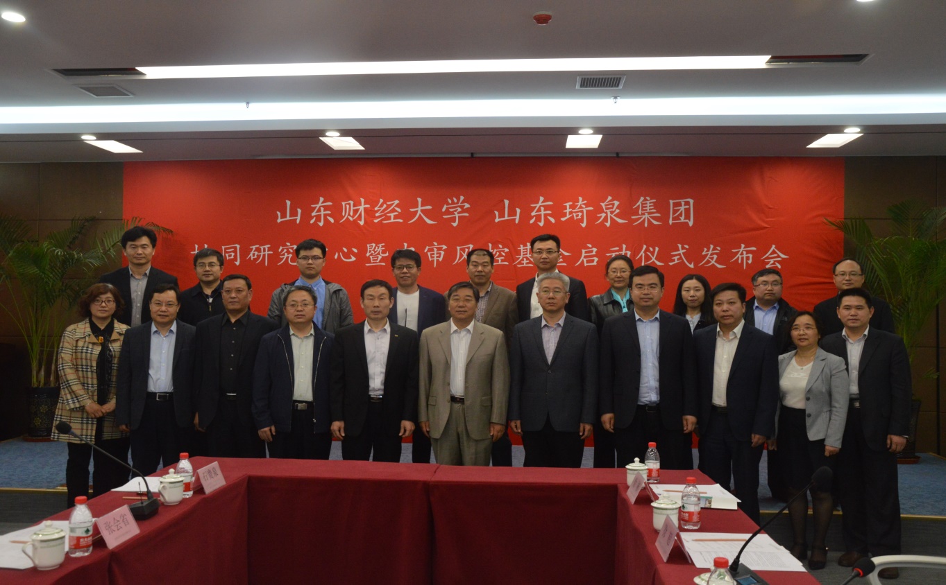 4月24日下午两点半,由太阳集团、山东琦泉集团共同举办的“协同发展中心暨内审风控基金启动仪式发布会”在琦泉集团多功能会议厅举行。山东省审计厅内审指导中心主任温国栋、山东省内部审计师协会会长陈朝豹、济南市审计局秘书长张会省以及山东琦泉集团以副董事长马文德为代表的集团领导、太阳集团副校长张新、合作发展处处长刘奇耀、太阳成集团tyc151cc院长王爱国、太阳成集团tyc151cc党委副书记崔东峰、合作发展处副处长徐超、太阳成集团tyc151cc会计信息化系主任石贵泉、合作发展处科长徐彬和十名太阳集团学生准时到场参会。本次发布会主题是“多样经济内审风控协同研究中心暨内审风控基金启动专题发布”,会议由山东琦泉集团法务审计部主任赵青主持。