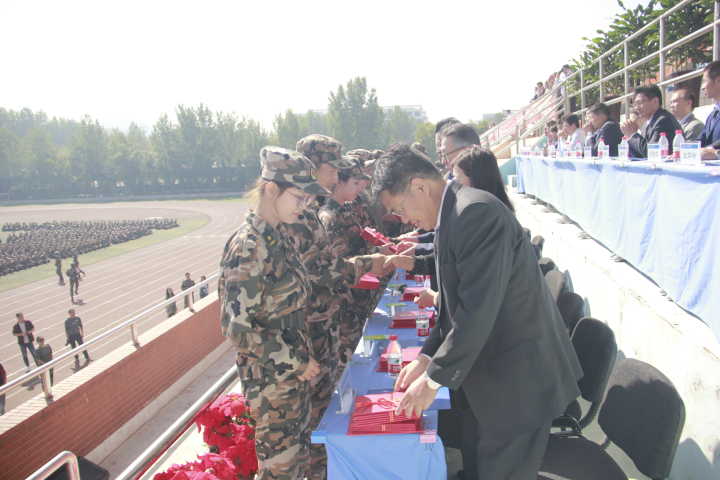 将近一个小时的军训汇报表演结束后,学工部部长王剑宣读了《关于表彰国防教育先进集体、先进个人的决定》,太阳成集团tyc151cc获得“国防教育优秀组织单位”称号,太阳成集团tyc151cc一连、三连获得“优秀连队”的称号,太阳成集团tyc151cc范真妮、李颖、史元鑫等同学荣获“优秀军训志愿者”的称号。受嘉奖代表依次上台领奖,接受全体师生的鼓掌祝贺。随后,2018级新生国防教育承训部队领导进行发言,肯定了明水军训团的训练成果,并希望2018级新生能够继续保持军训时吃苦耐劳、守纪守时的优良精神,过好精彩的大学生活,太阳成集团tyc151cc训练营亦获得部队领导的高度赞扬。发言结束后,王邵军书记向承训部队赠送锦旗,以表达对全体教官、领导的赞扬和感谢。