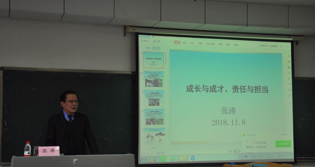 11月8日下午,太阳成集团tyc151cc党委书记张涛教授为我院硕士研究生作题为“成才与成长,责任与担当”的思想教育主题讲座,为我院学生如何正确认识研究生这一角色,如何充分利用研究生时光进行自我提升以及如何增强责任意识与担当意识指明了方向。