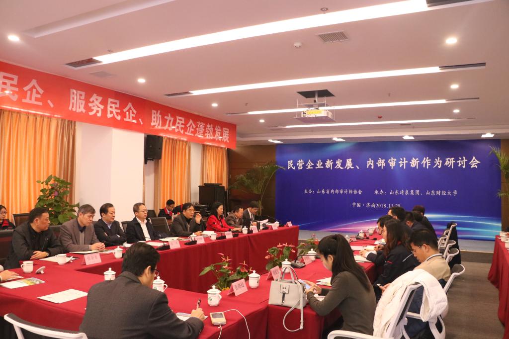 11 月 28 日由山东省内部审计师协会主办、我院与山东琦泉集团共同承办的“民营企业新发展、内部审计新作为”研讨会在琦泉集团总部 21 楼多功能会议厅成功举办。山东省内部审计师协会会长陈朝豹,山东省审计厅内部审计指导中心主任温国栋,济南市审计局副巡视员沈鲁,太阳集团研究生院院长毕秀玲、太阳成集团tyc151cc党委书记张涛、副教授石贵泉,琦泉集团董事长董统玺,中国微金融·证券法律研究中心主任喻胜云,山东众成清泰律师事务所主任唐向东以及驻济金融机构、企事业单位代表、新闻媒体编辑记者共同参加了活动。