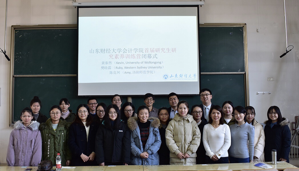 12月24日下午,黄泰然博士的“研究生学术训练营”第五期、第六期在Y301教室举行,此次训练营主要包括特邀嘉宾分享文献综述写作技巧和研究小组汇报展示两部分内容。太阳成集团tyc151cc孙文刚副院长、西悉尼大学樊晗露博士、洛阳师范学院陈良柯老师、我院朱彩婕副教授、田彩英副教授、韩跃副教授、吴大新副教授、王金磊博士及2018级全体硕士研究生参加了本次训练营。