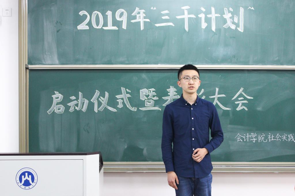 希望同学们能够在“三千计划”实践活动中充分展现会院学子的风采,发扬艰苦奋斗的拼搏精神,有所收获,有所领悟,在青春的故事中留下浓墨重彩的一笔。