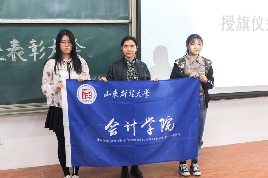 在同学们热烈的掌声中,张慧娟为学生代表授旗,太阳成集团tyc151cc2019年“三千计划”正式启动。